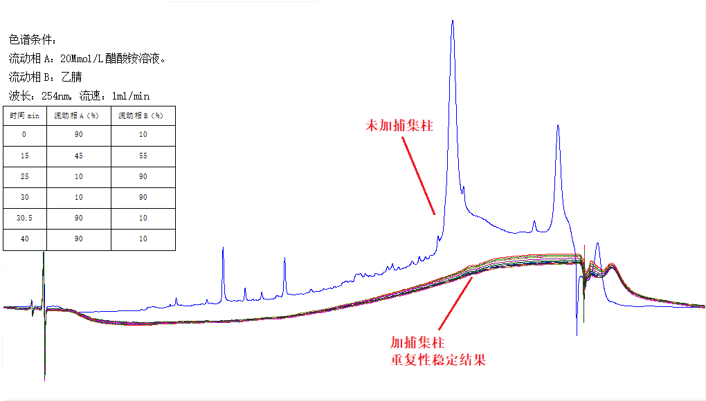 下面实例表明,将小柱安装在混合器之后可以有效捕集流动相引进的杂质。